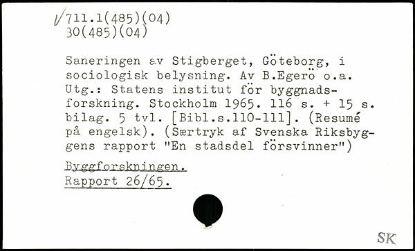 Saneringen av Stigberget, Goteborg, i sociologisk belysning. Av B.Egerö o.a. Utg.: Statens institut for byggnadsforskning.