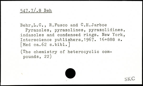 Pyrazoles, pyrazolines, pyrazolidines, indazoles and condensed rings. New York, Interscience publishers,19^7.