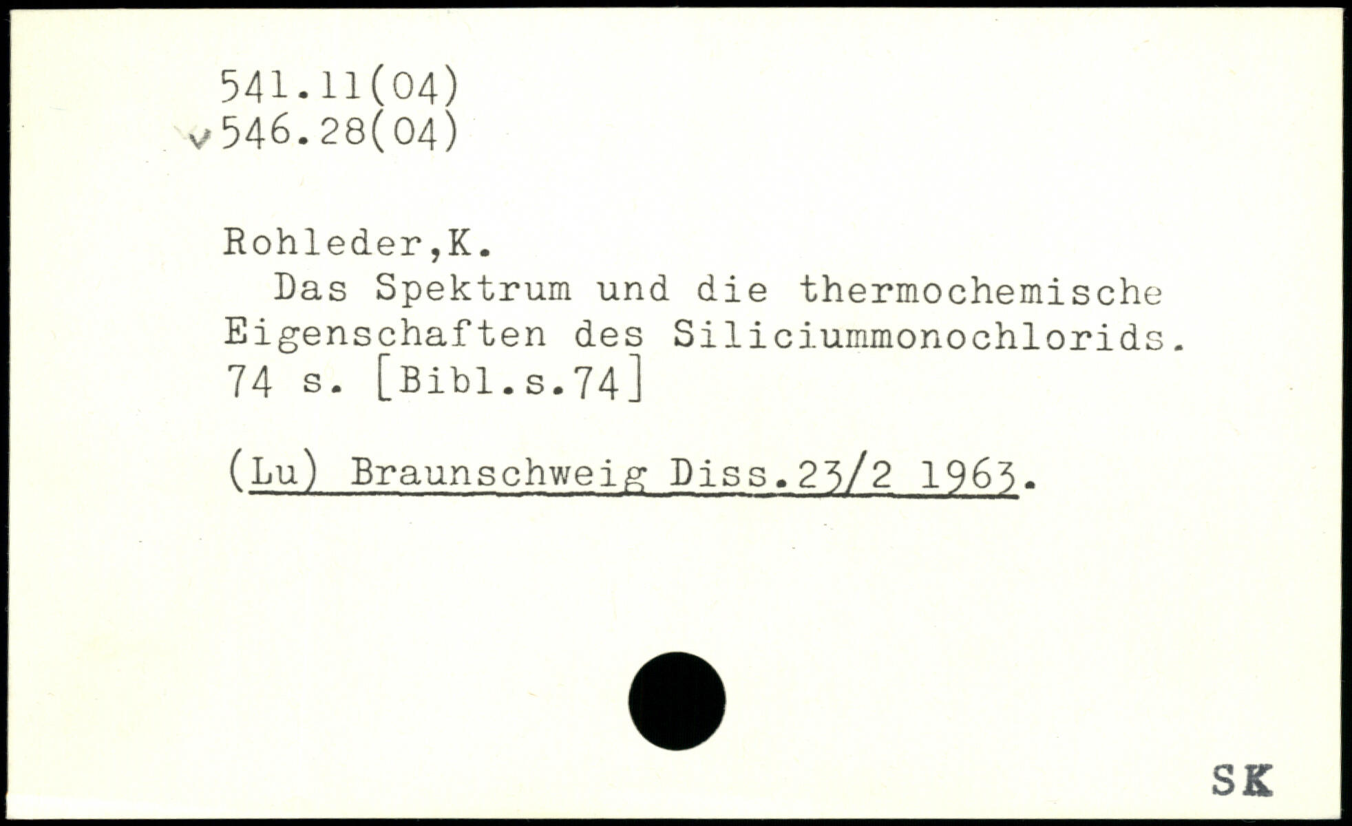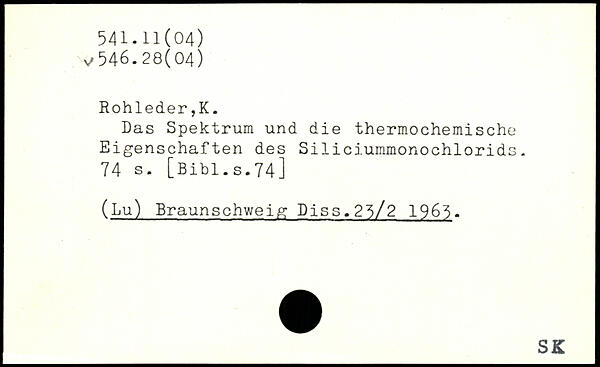 Das Spektrum und die thermochemische Eigenschaften des Siliciummonochlorids.