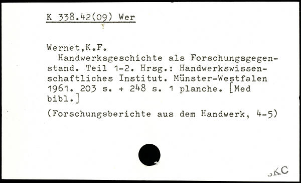 Handwerksgeschichte als Forschungsgegenstand. Teil 1-2. Hrsg.: Handwerkswissenschaftliches Institut. Münster-Westfalen 1961.