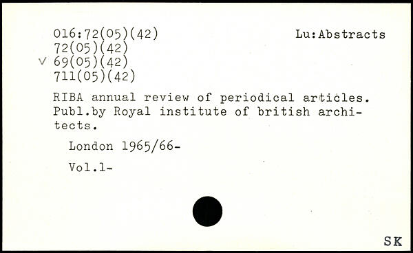 UDK: 016:72(05)(42), 72(05)(42), 69(05)(42)