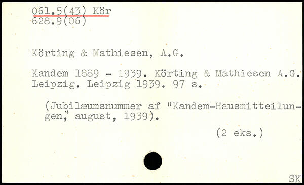 Kandem 1889 - 1959. Körting & Mathiesen A.G. Leipzig.