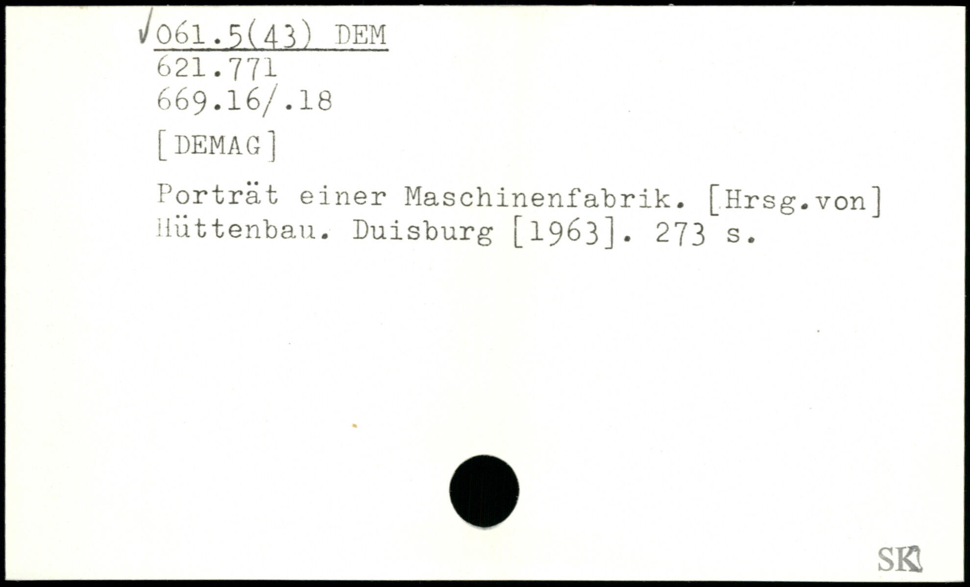 Porträt einer Maschinenfabrik. [Hrsg.von] Hüttenbau. Duisburg [1963].