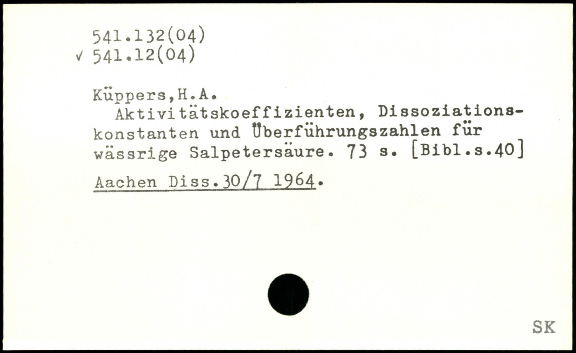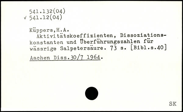 Aktivi tatskoeffizienten, Dissoziationskonstanten und Uberführungszahlen für wässrige Salpetersäure. 73 3. [ßibl.s.40] Aachen Diss.^0/7 19&4