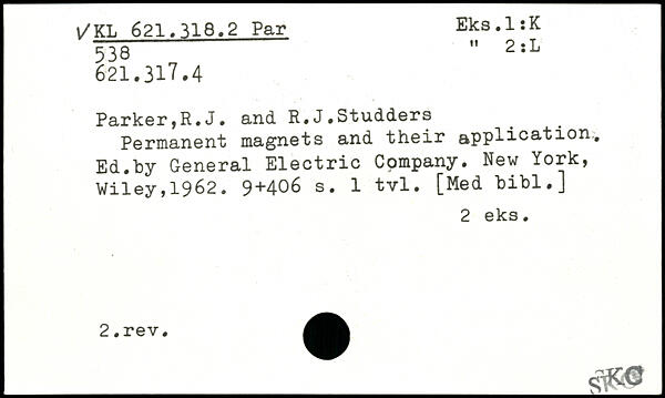 Permanent magnets and their appli.a'fci0n-Ed.by General Electric Company.