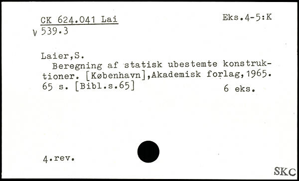 Beregning af statisk ubestemte konstruktioner. [København],Akademisk forlag,1965.
