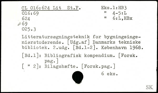 Litteratursøgningsteknik for bygningsinge-niørstuderende. [Udg.af] Danmarks tekniske bibliotek. 2,udg. [