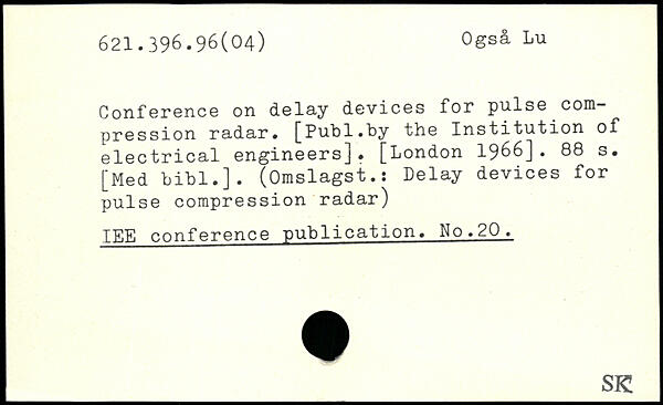 Conference on delay devices for pulse compression radar.