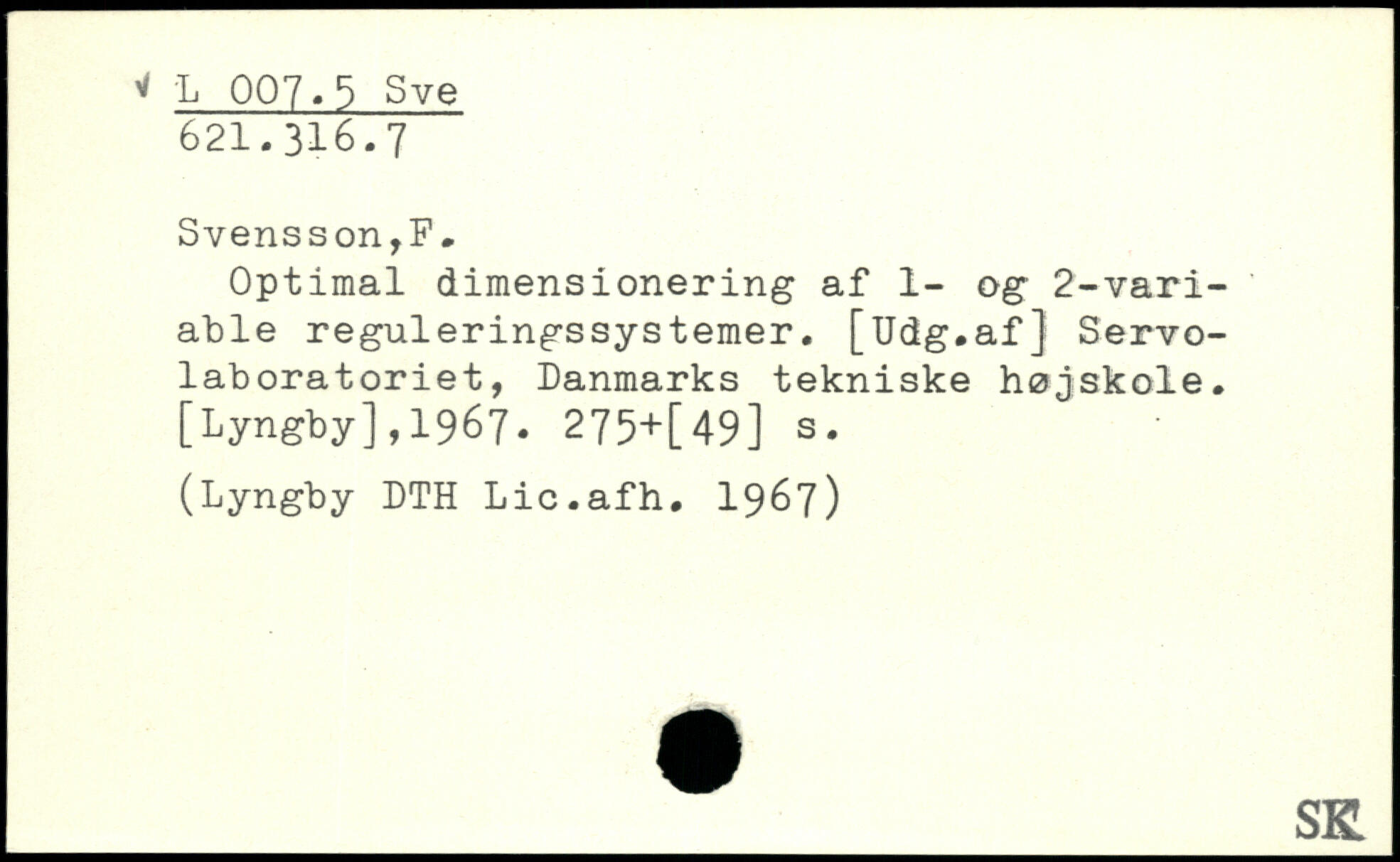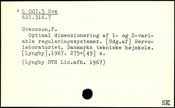 Optimal dimensionering af 1- og 2-vari-able reguleringssys terner.