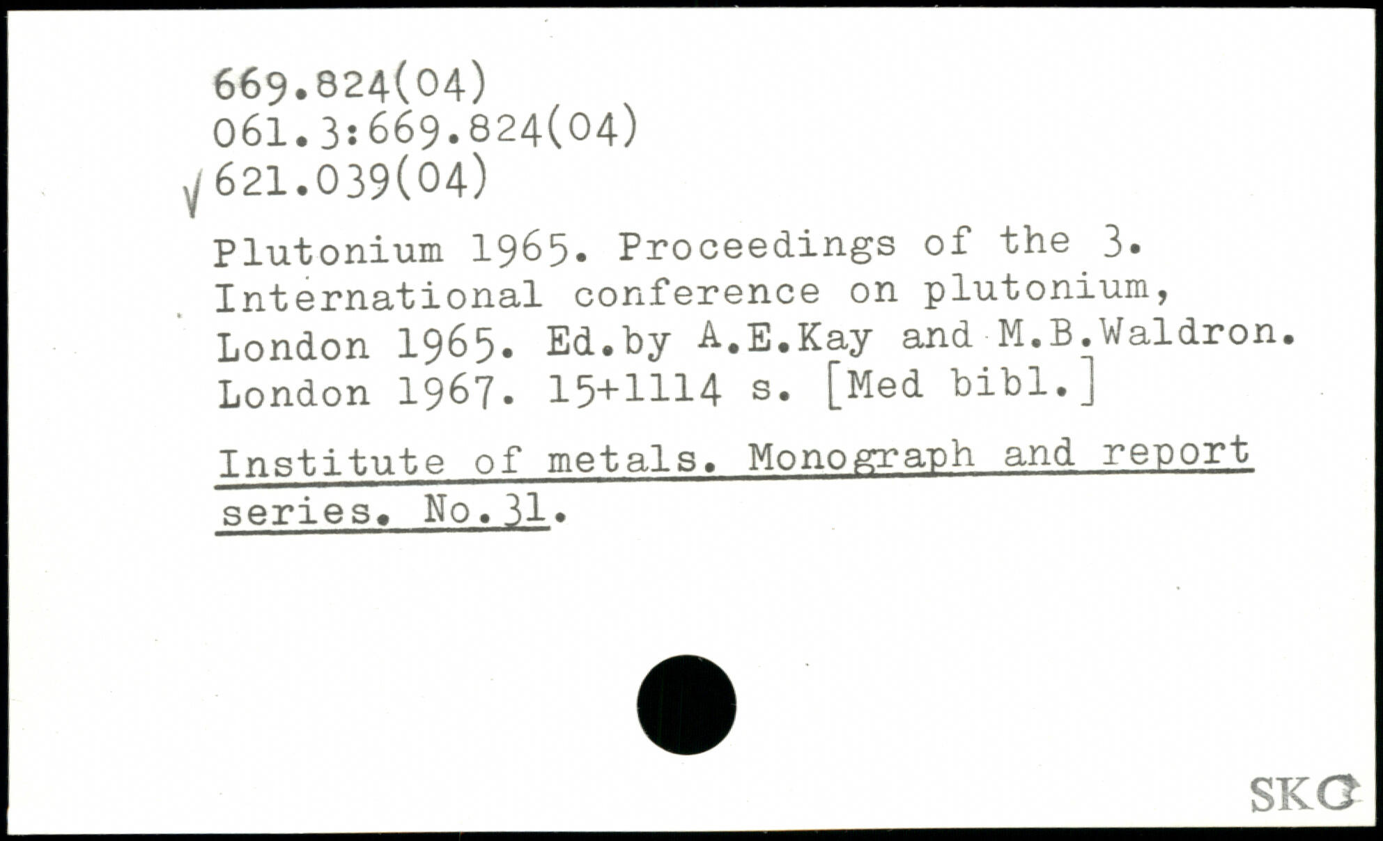 Plutonium 1965. Proceedings of the 3. International conference on plutonium