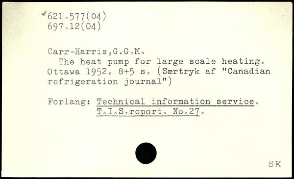 Carr-Harris ,GfG J, The heat pump for large scale heatingo