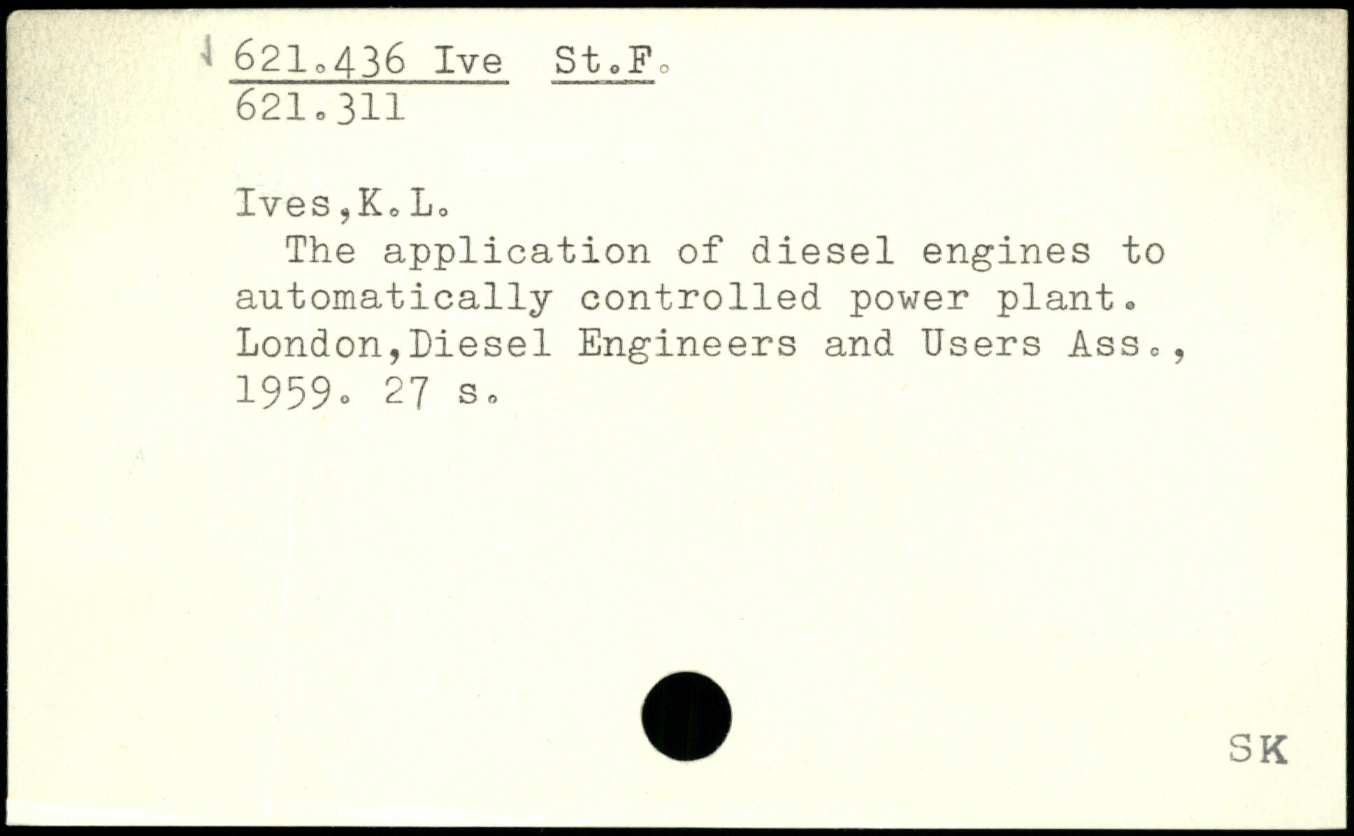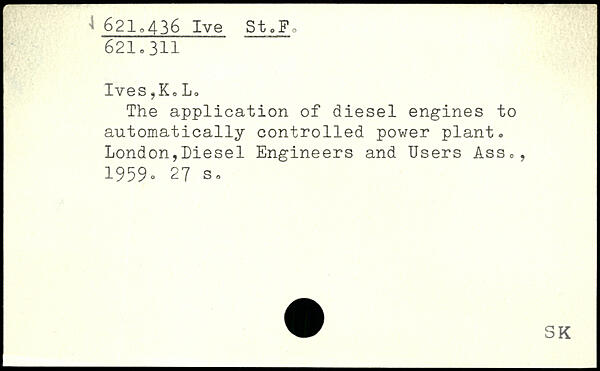The application of diesel engines to automatically controlled power plant. London,Diesel Engineers and Users Ass., 1959