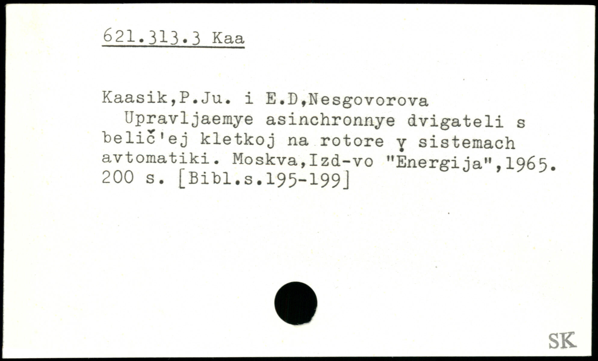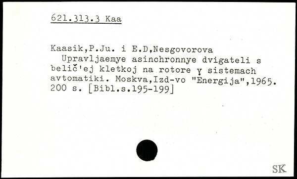 KaasikjP.Ju. i E.D,Nesgovorova Upravljaemye asinchronnye dvigateli s belie'ej kletkoj na rotore y sistemach avtomatiki. Moskva,Izd-vo "Energi ja",196S