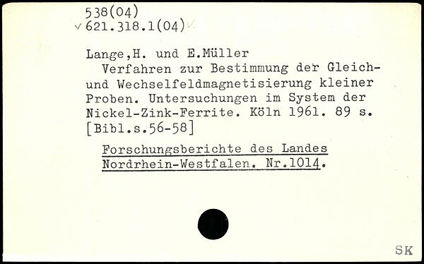 Verfahren zur Bestimmung der Gleich-und Wechselfeldmagnetisierung kleiner Proben. Untersuchungen im System der Nickel-Zink-Ferrite.