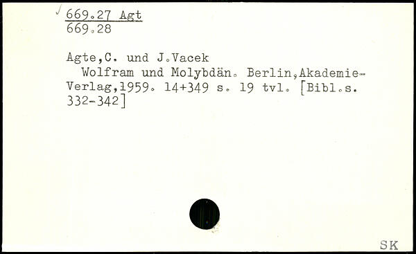 Wolfram und Molybdän, Berlin,Akademie-Verlag, 1959, 14+349 s. 19 tvl,, [Bibi,s. 332-342]