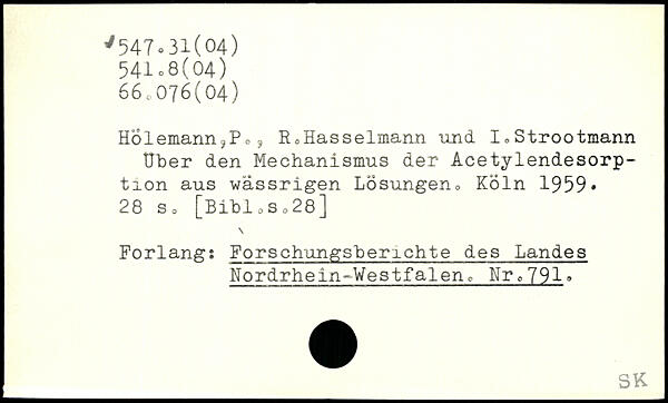 HölemannjPo, RoHasselmann und I0Strootmann Uber den Mechanismus der Acetylendesorption aus wässrigen Lösungeno