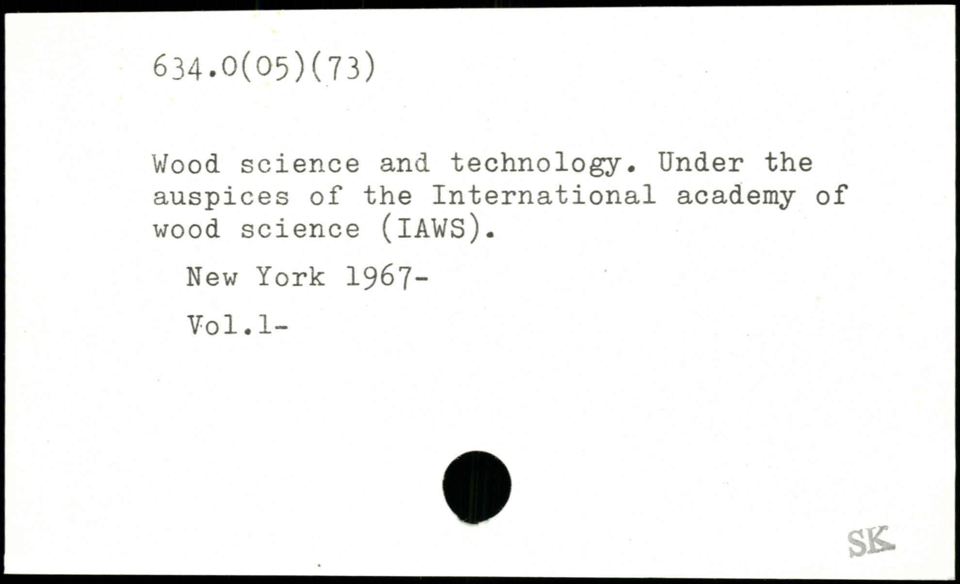 Wood science and technology. Under the auspices of the International academy of wood science (lAWS).