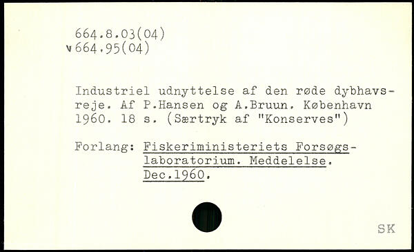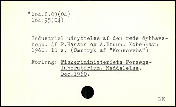 Industriel udnyttelse af den røde dybhavs-reje. Af P.Hansen og A.Bruun