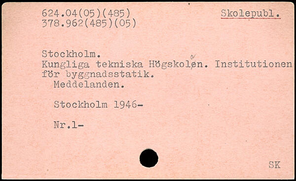 Kungliga tekniska H’ögskolpn. Institutionen för byggnadsstatik. Meddelanden.