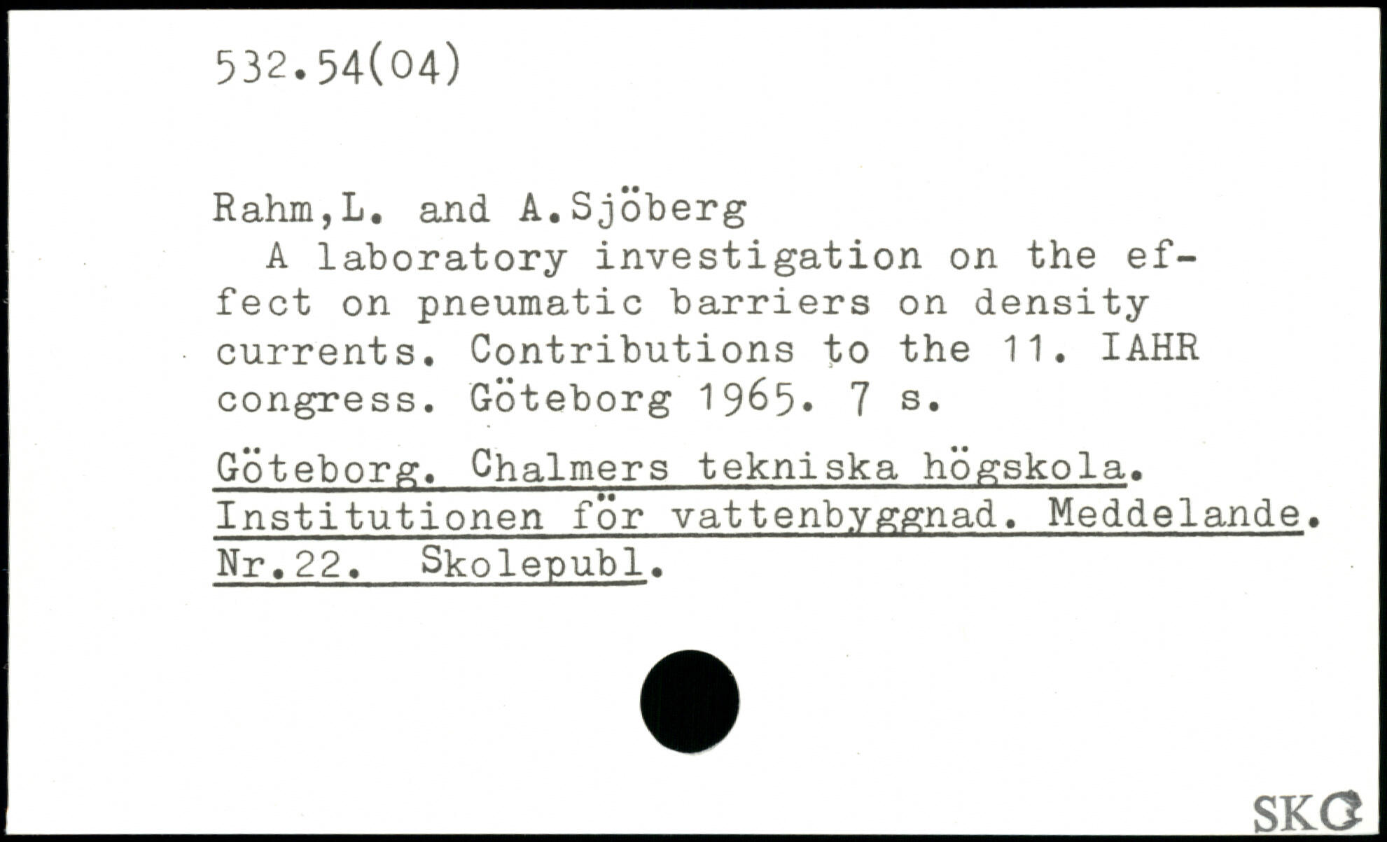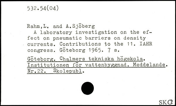 A laboratory investigation on the effect on pneumatic barriers on density currents. Contributions to the 11. IAHR congress. Göteborg 1965