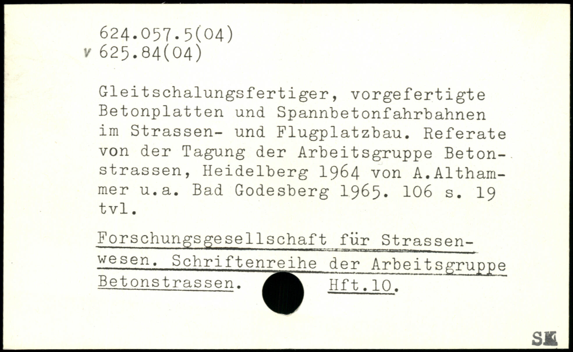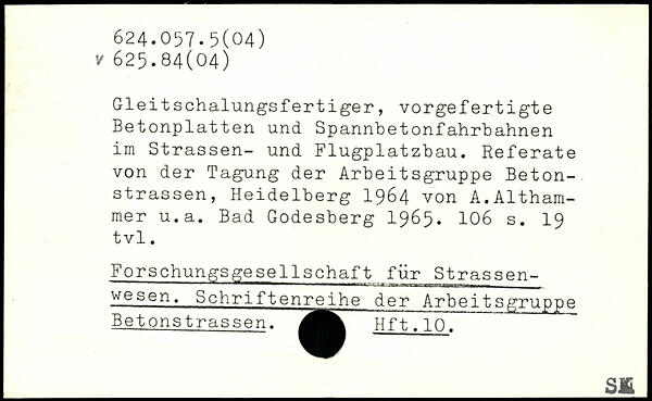 Gleitschalungsfertiger, vorgefertigte Betonplatten und Spannbetonfahrbahnen im Strassen- und Flugplatzbau. Referate von der Tagung der Arbeitsgruppe Betonstrassen, Heidelberg 1964 von A.Althammer u.a. Bad Godesberg 1965.