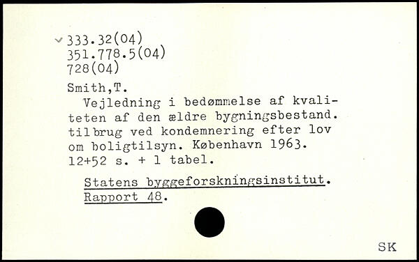 Vejledning i bedømmelse af kvaliteten af den ældre bygningsbestand, til brug ved kondemnering efter lov om boligtilsyn.