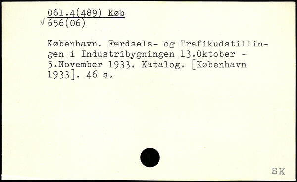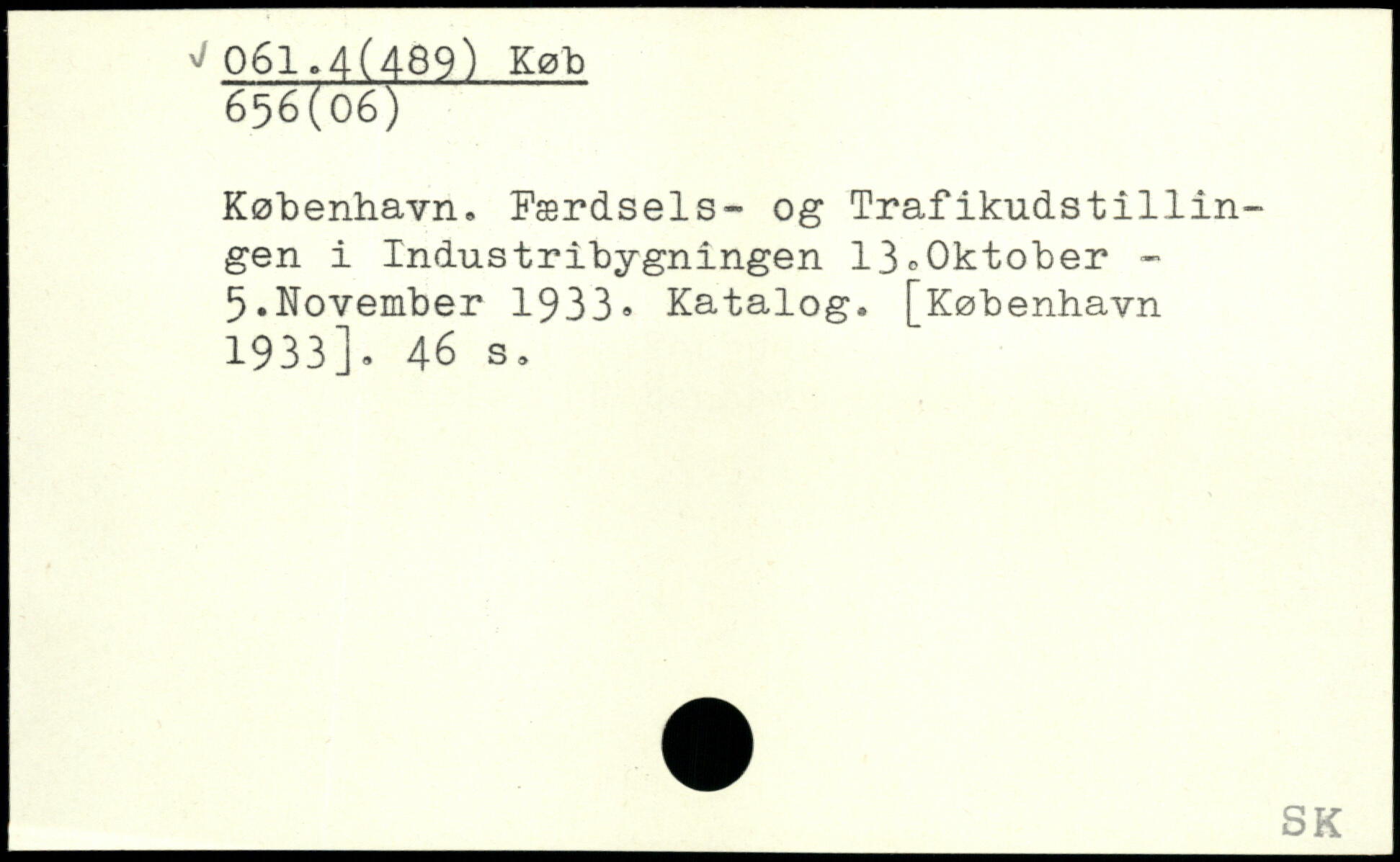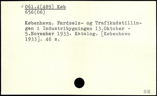 København. Færdsels- og Trafikudst1111ngen i Industribygningen 13,Oktober -5.November 1933, Katalog.