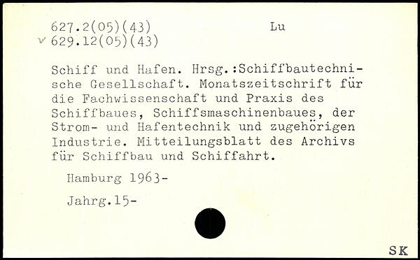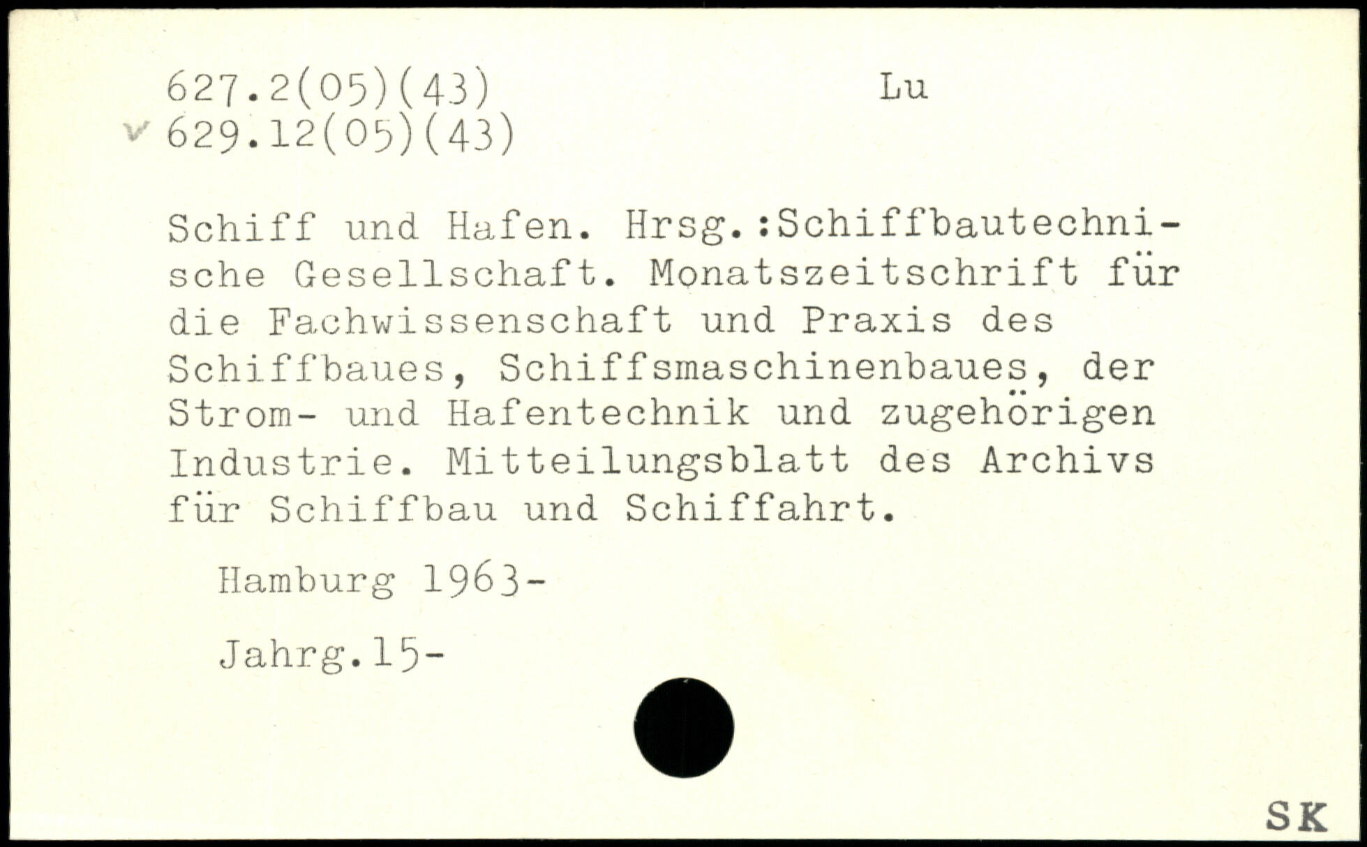 Schiff und Hafen. Hrsg.: Schiffbautechnische Gesellschaft. Monatszeitschrift für die Fachwissenschaft und Praxis des Schiffbaues, Schiffsmaschinenbaues, der Strom- und Hafentechnik und zugehörigen Industrie. Mitteilungsblatt des Archivs für Schiffbau und Schiffahrt.