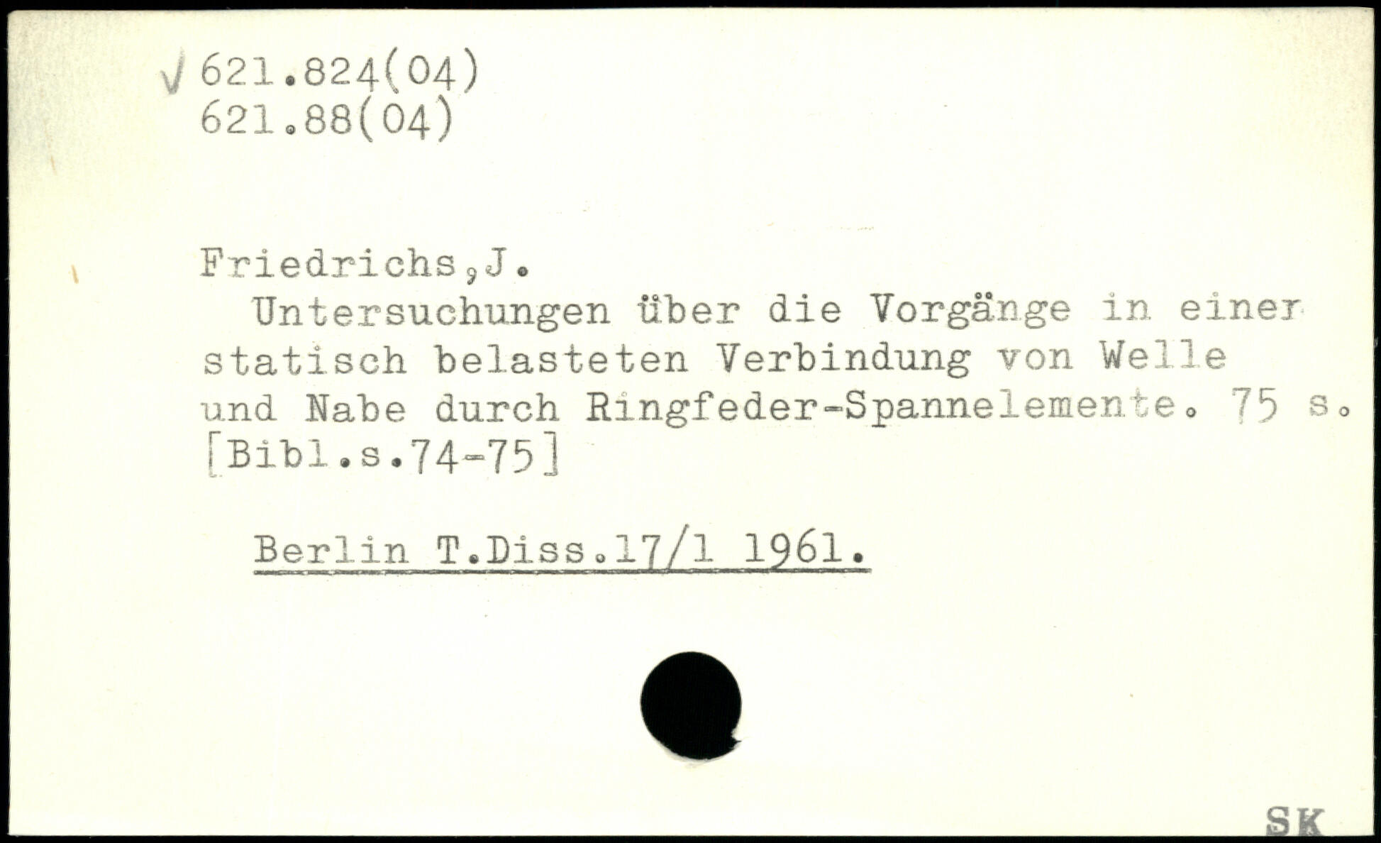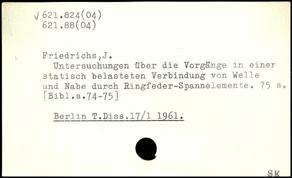 Untersuchungen über die Vorgänge in einer statisch belasteten Verbindung von Welle und Nabe durch Ringfeder-Spannelemente<>
