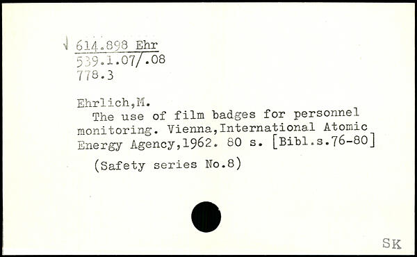 The use of film badges for personnel monitoring. Vienna,International Atomic Energy Agency,19&2.