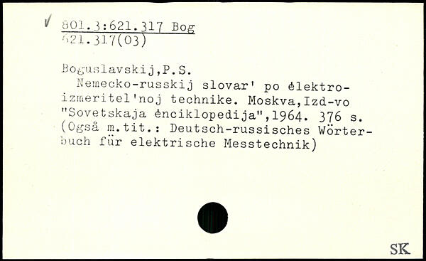 Nemecko-russkij slovar' po élektro-izrneritel 'no j technike. Moskva,Izd-vo "Sovetskaja énciklopedija",1964.