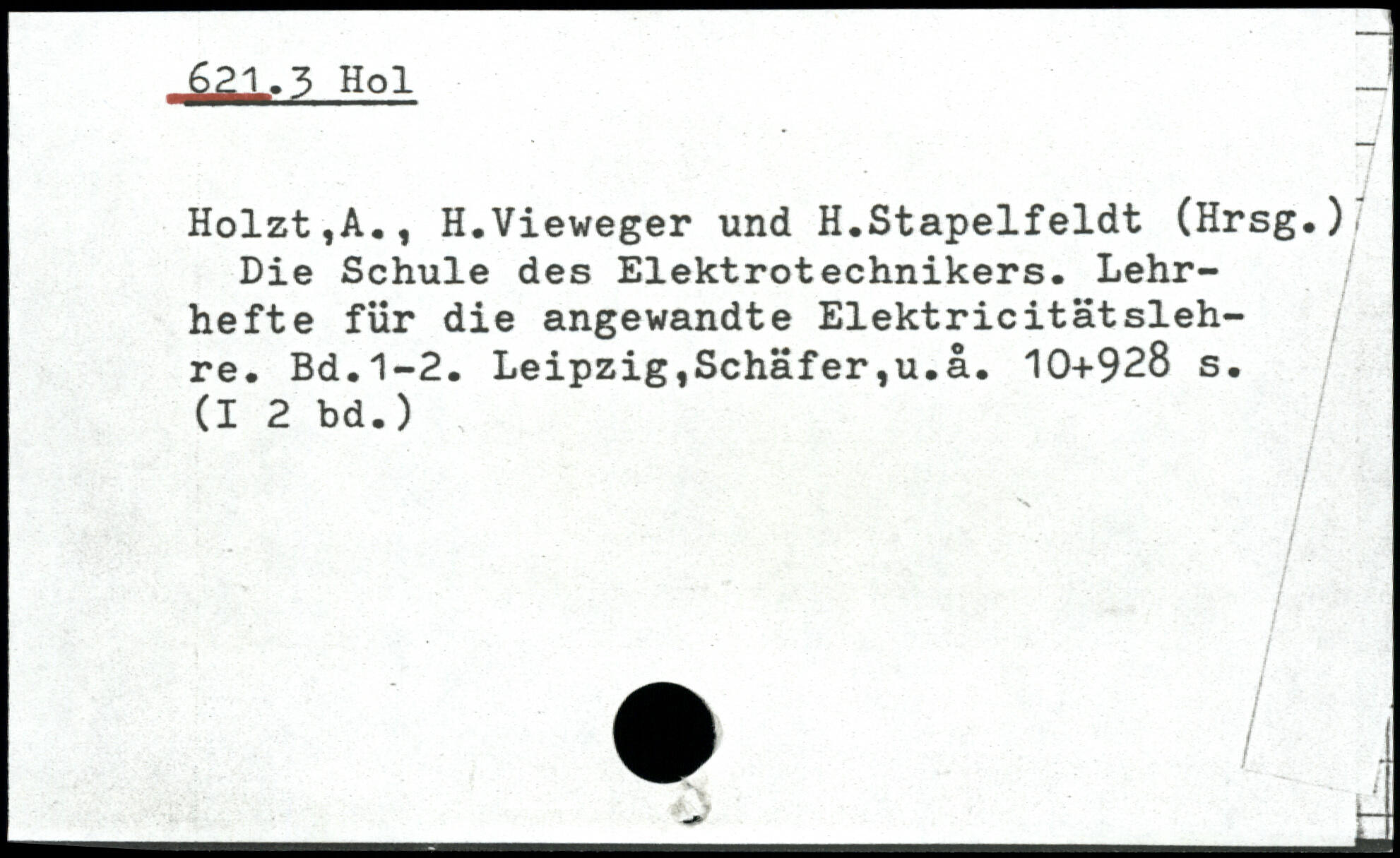 Holzt,A., H.Vieweger und H.Stapelfeldt (Hrsg,)/ Die Schule des Elektrotechnikers. Lehrhefte für die angewandte Elektricitätsleh-re.