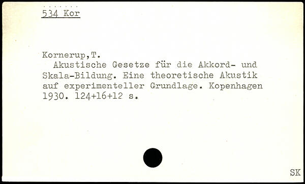 Akustische Gesetze für die Akkord- und Skala-Bildung. Eine theoretische Akustik auf experimenteller Grundlage. Kopenhagen 1930.