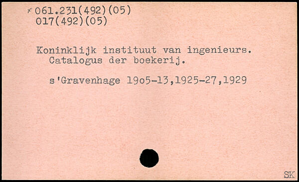 Koninklijk instituut van ingénieurs. Catalogus der boekerij. s'Oravenhage 19o5-13,1925-27,1929