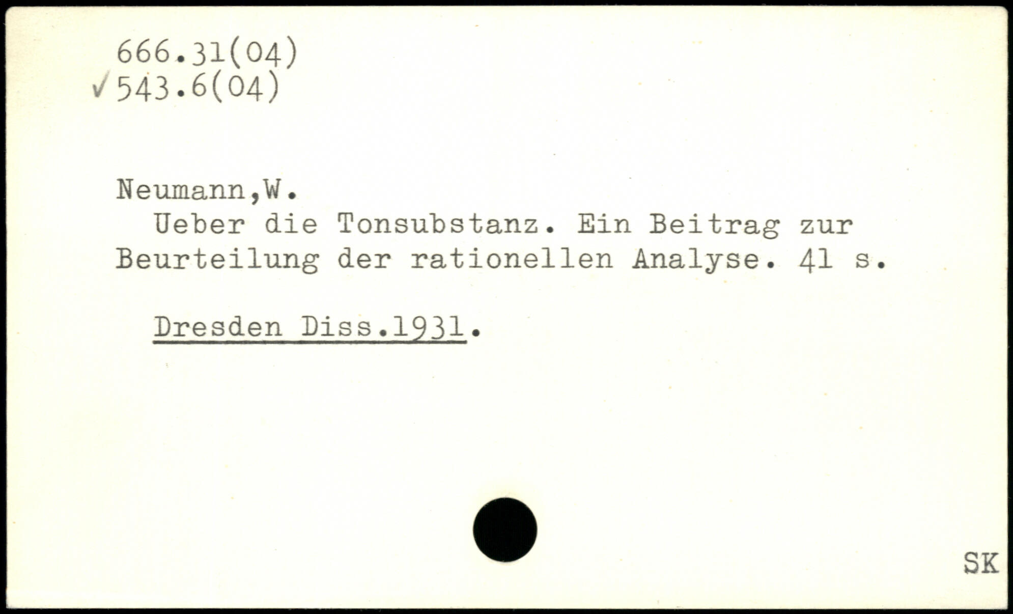 lieber die Tonsubstanz. Ein Beitrag zur Beurteilung der rationellen Analyse.