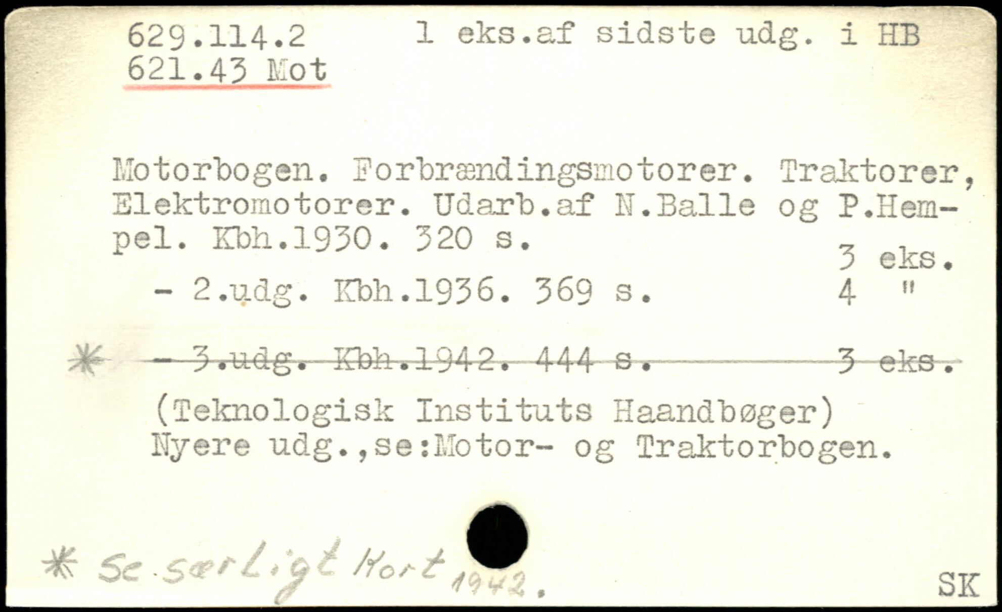 Motorbogen. Forbrændingsmotorer. Tr airt o rer, Elektromotorer. Udarb.af N.Balle og P.Hem-pel. ICoh.1930.