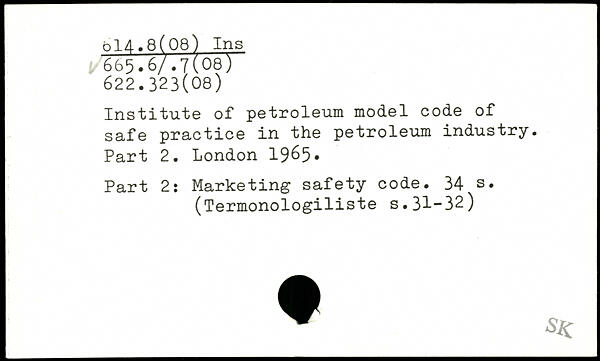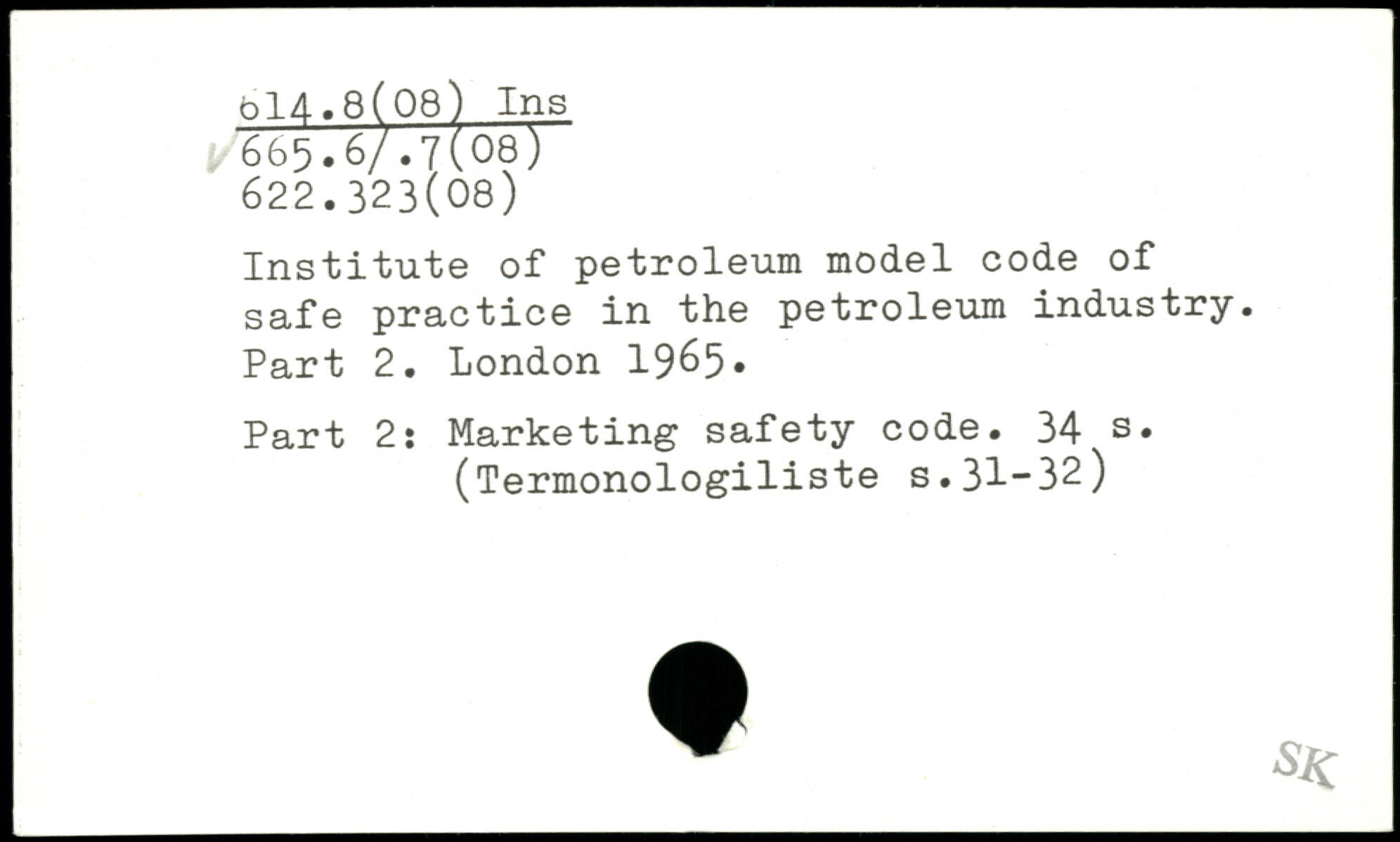 Institute of petroleum model code of safe practice in the petroleum industry. Part 2. London 19^5, Part 2: Marketing safety code.