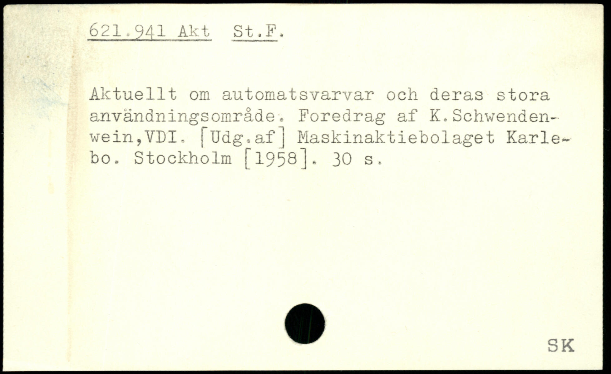 Aktuellt om automatsvarvar och deras stora användningsområde. Föredrag af K.Schwenden- ! wein,VDI, j"Udg,af] Maskinaktiebolaget Karle- J bo.