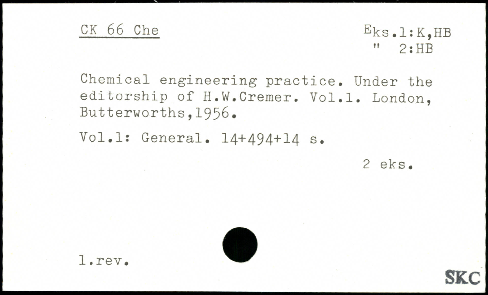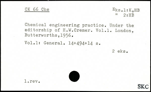 Chemical engineering practice. Under the editorship of H.W.Cremer.