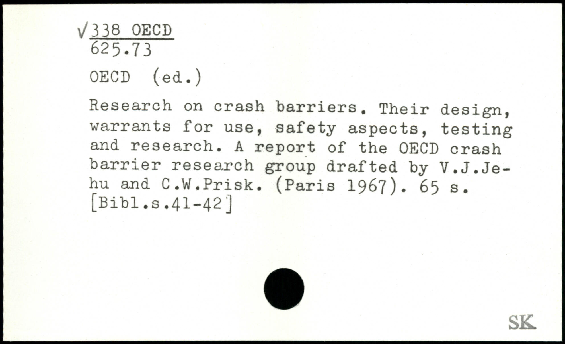 Research on crash barriers. Their design, warrants for use, safety aspects, testing and research. A report of the OECD crash barrier research group drafted by V.J.Jehu and C.W.Prisk. (