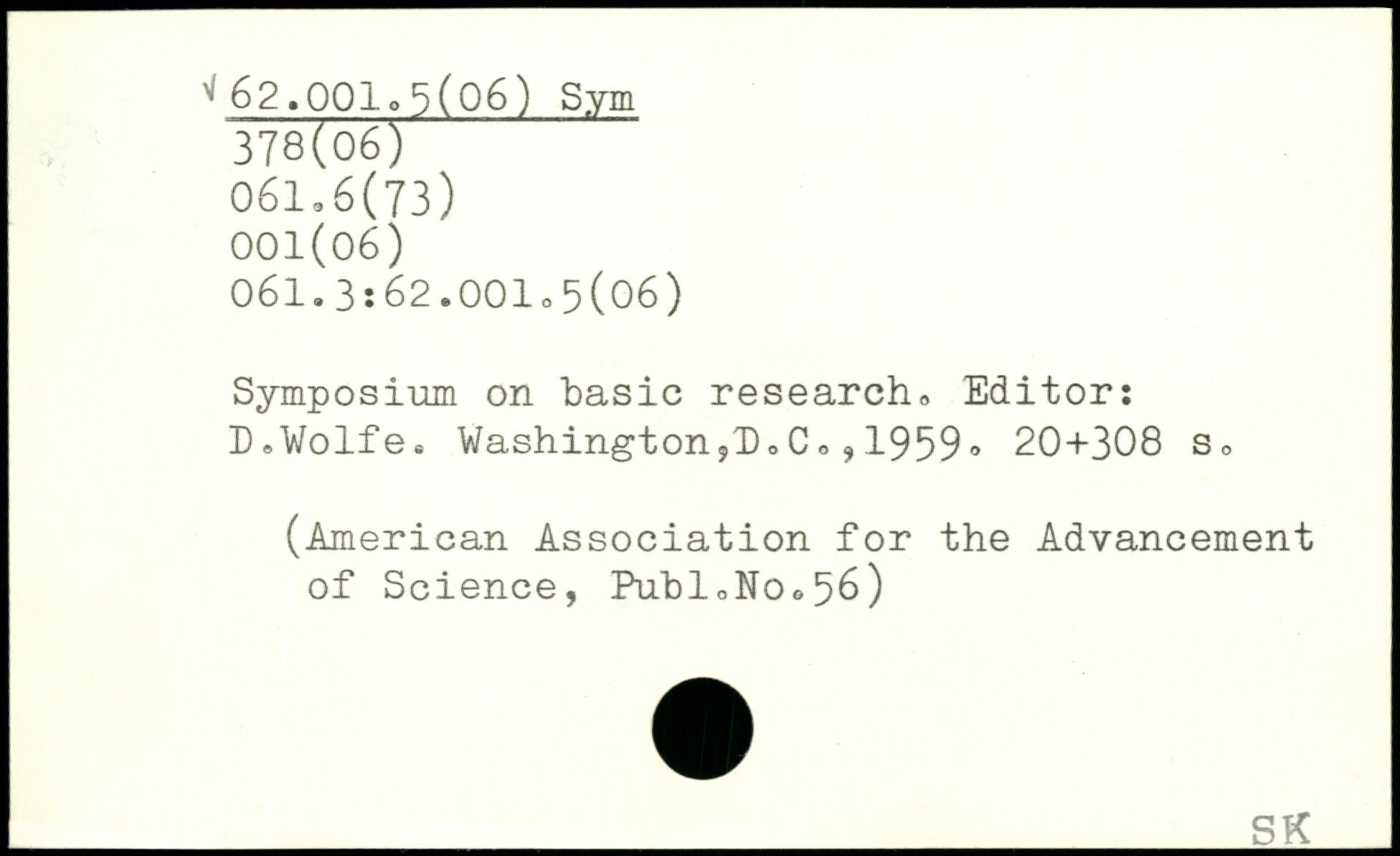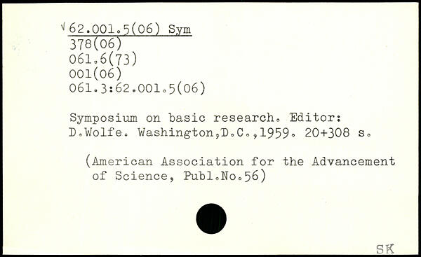 Symposium on "basic research. Editor: D.Wolfe. Washington5h,C,,1959