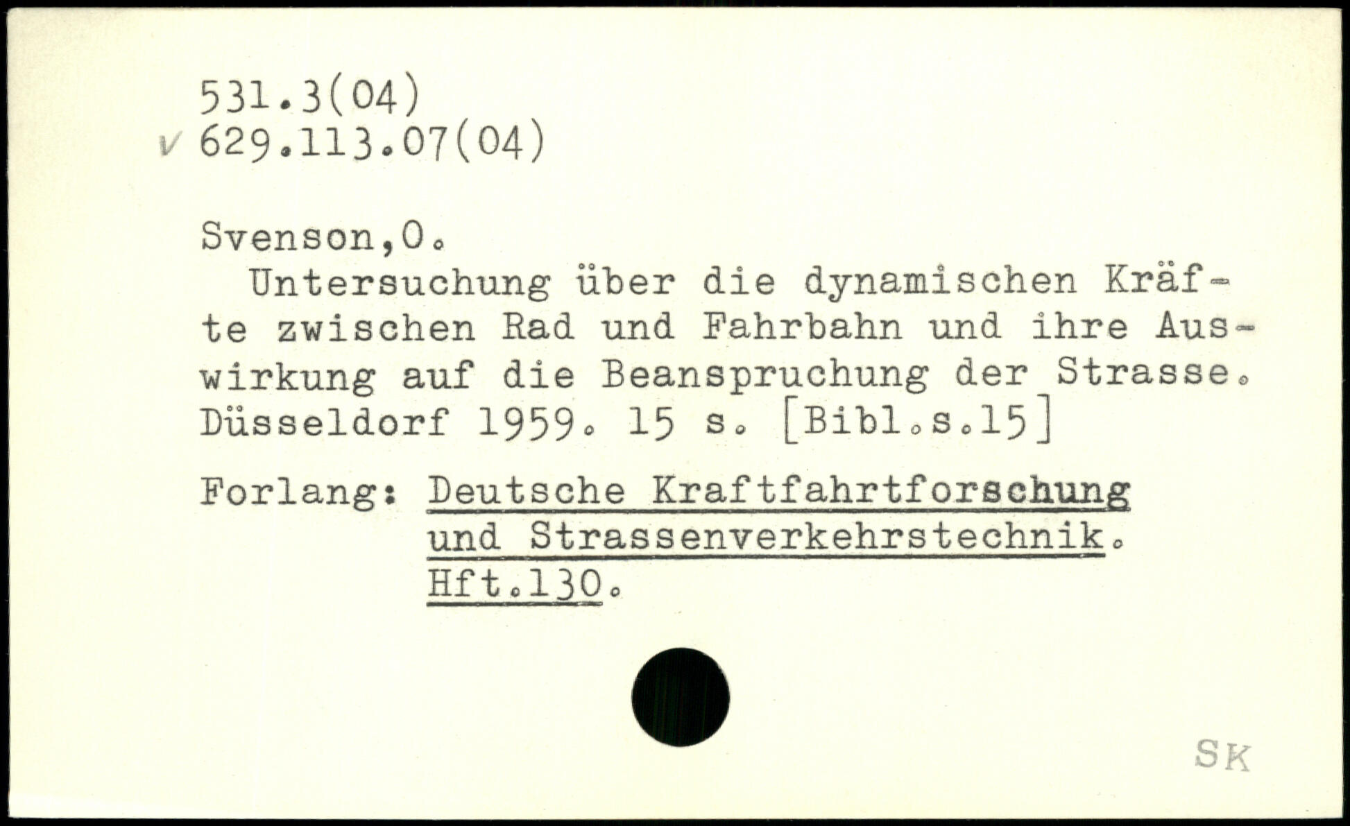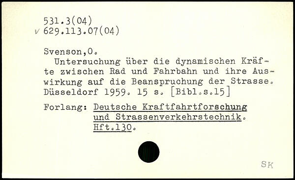 Untersuchung über die dynamischen Kräfte zwischen Rad und Fahrbahn und ihre Auswirkung auf die Beanspruchung der Strasse. Düsseldorf 1959