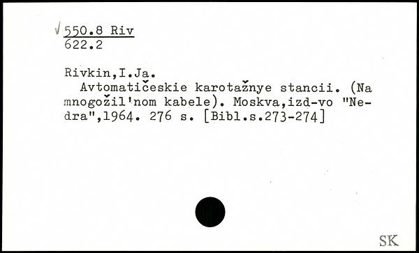 Rivkin,I.Ja. Avtomaticeskie karotaznye stancii. (Na mnogozil'nom kabele). Moskva,izd-vo "Ne-dra",1964.