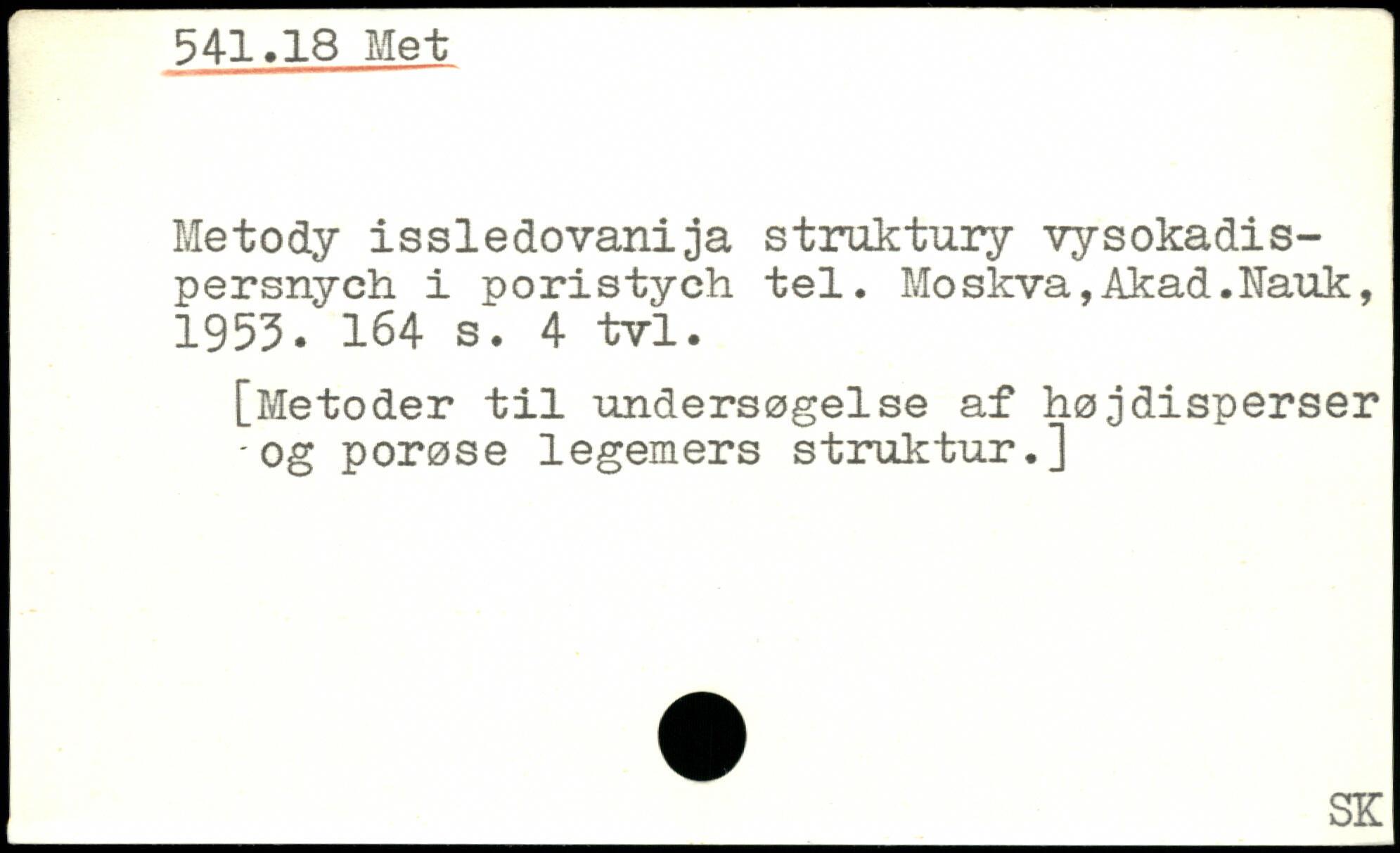 Metody issledovanija struktury vysokadis-persnych i poristych tel. Moskva,Akad.Nauk, 1953.