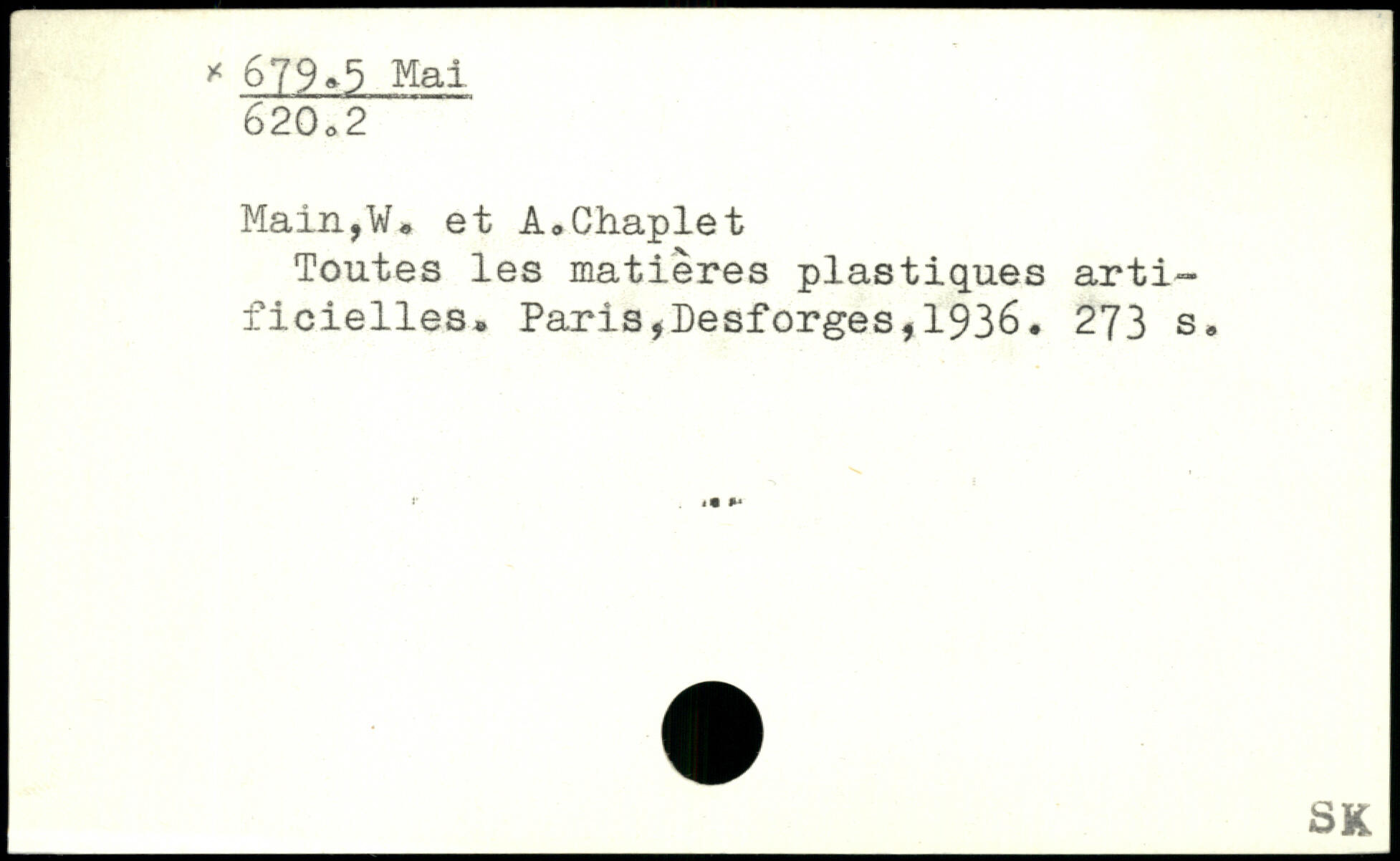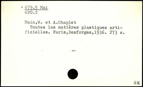 Main,W, et A.Chaplet Toutes les matières plastiques artificielles