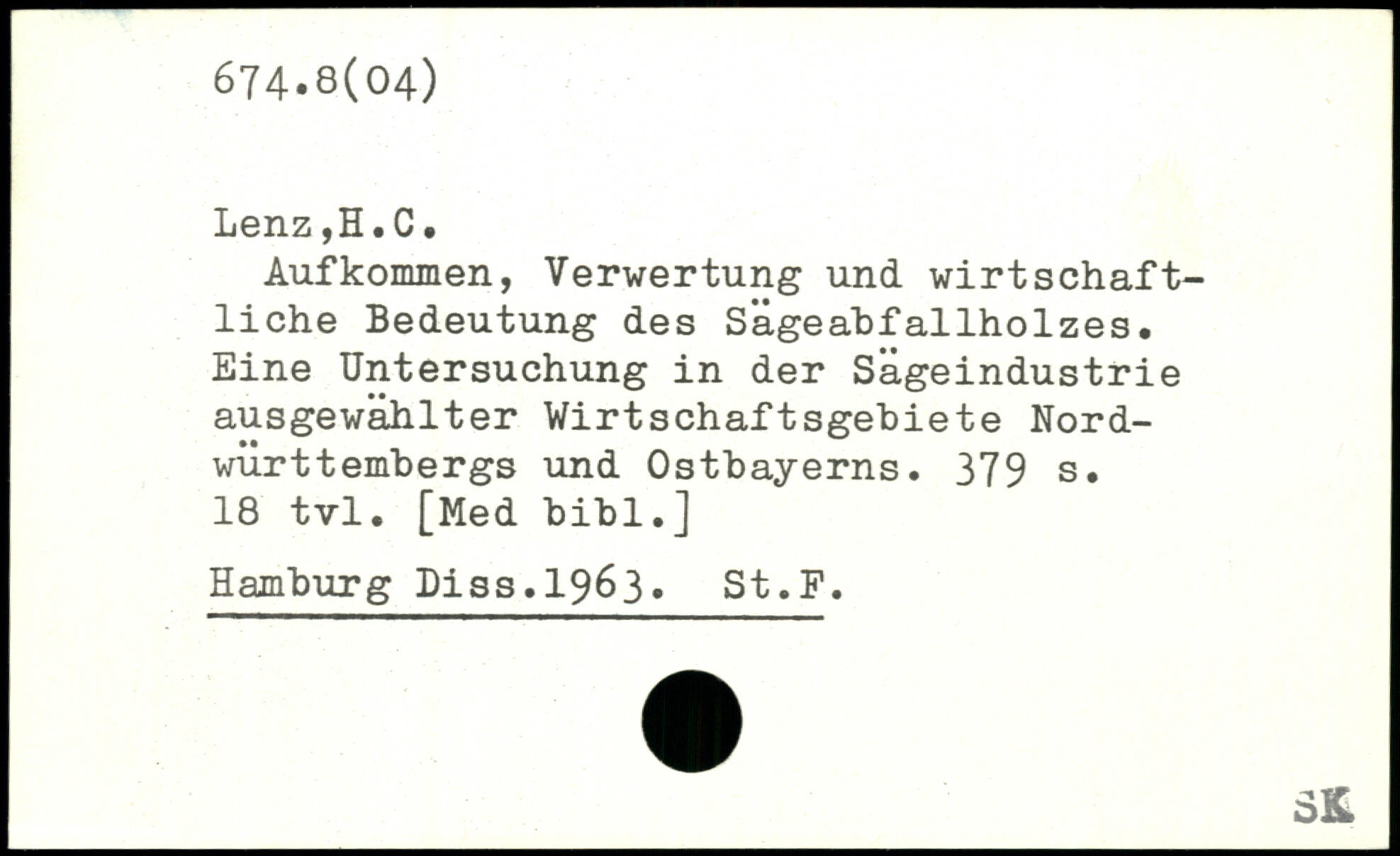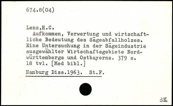 Aufkommen, Verwertung und wirtschaftliche Bedeutung des Sageabfallholzes. Eine Untersuchung in der Sägeindustrie ausgewählter Wirtschaftsgebiete Nordwürttembergs und Ostbayerns.