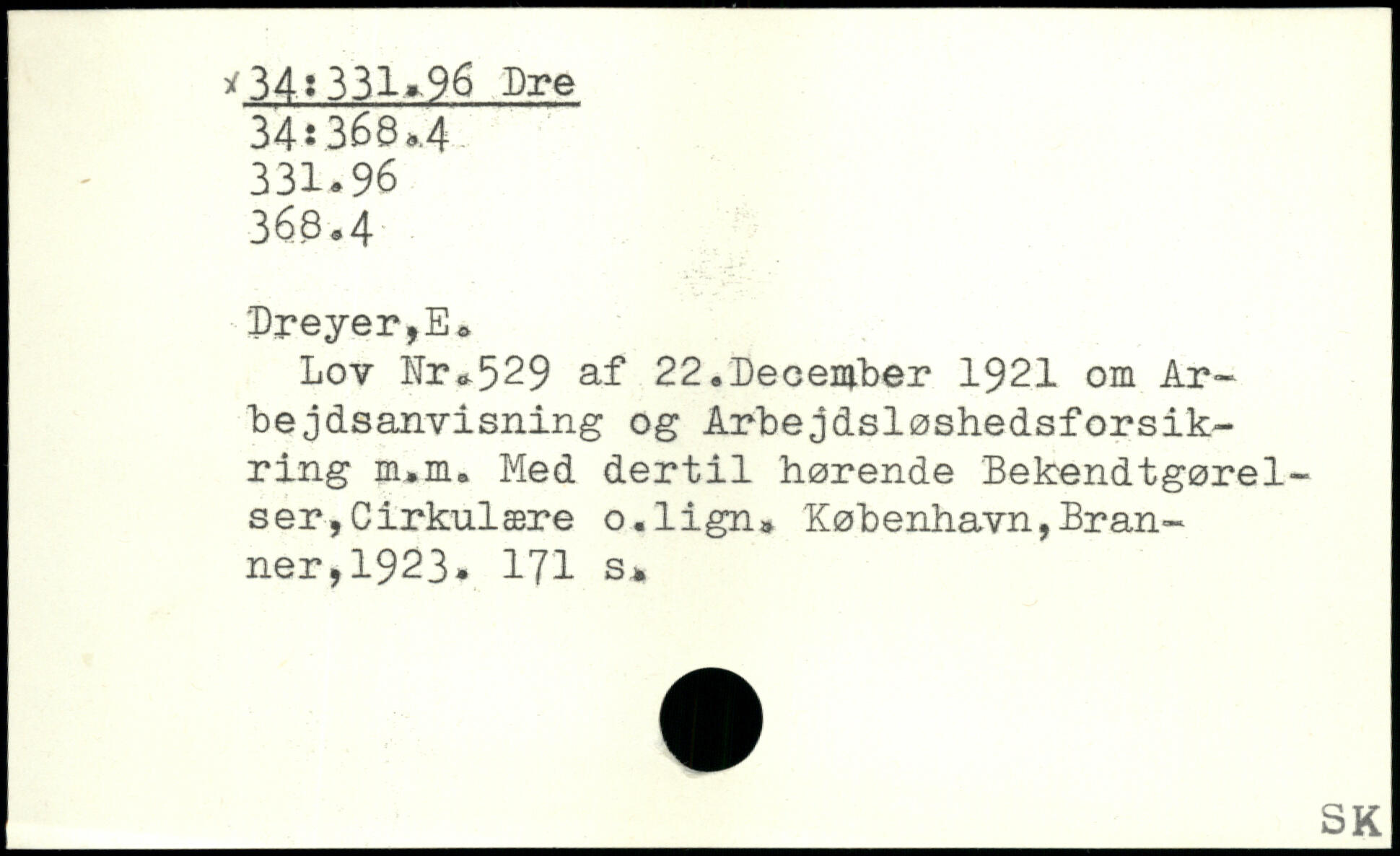 Lov Nr,529 af 22.December 1921 om Arbe jdsanvisning og Arbejdsløshedsforsikring m.m. Med dertil hørende Bekendtgørelser, Cirkulære o.lign