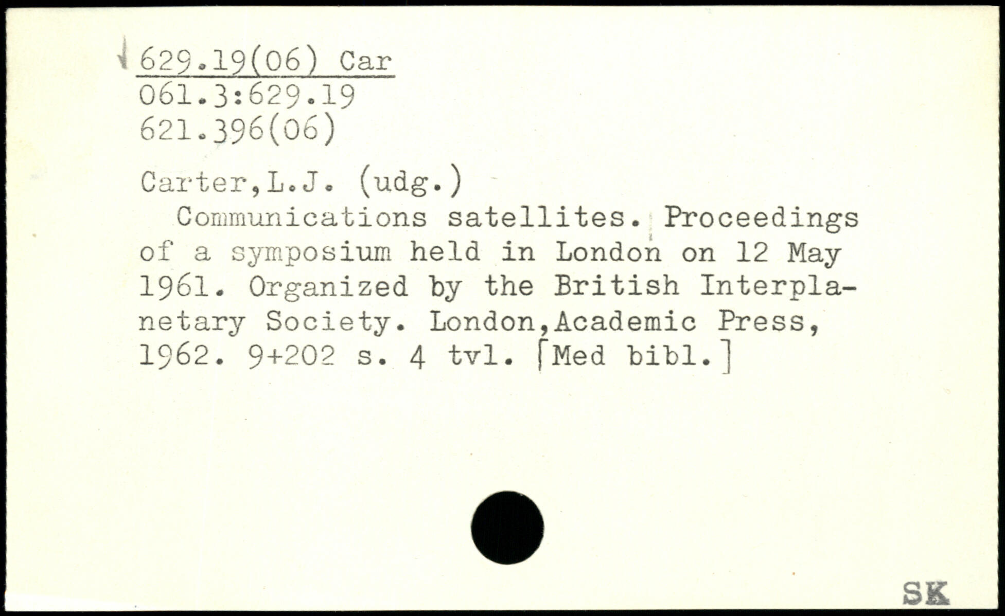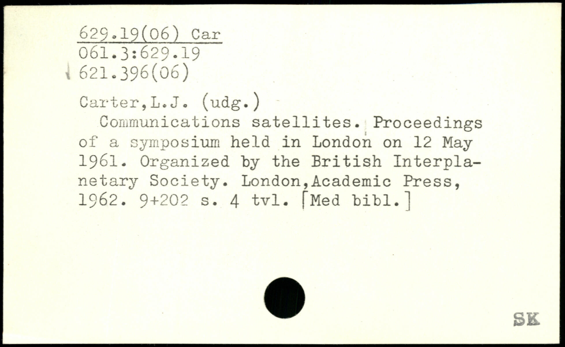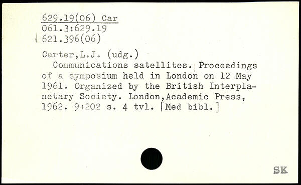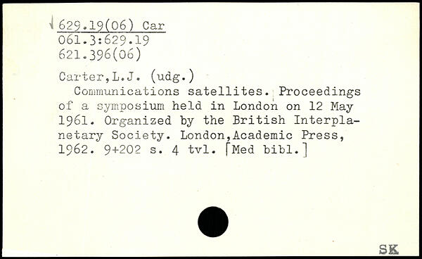 Communications satellites. Proceedings of a symposium held in London on 12 May 1961. Organized by the British Interplanetary Society.