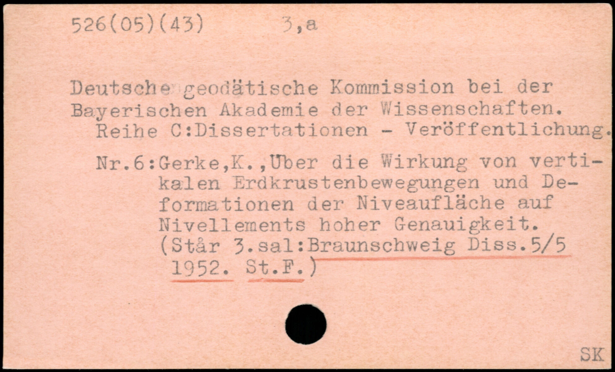 Deutsche geodätische Kommission bei der Bayerischen Akademie der Wissenschaften. Reihe CiDissertationen - Veröffentlichung. Nr.6:Gerke,K.,Uber die Wirkung von vertikalen Erdkrustenbewegungen und Deformationen der Niveaufläche auf Nivellements hoher Genauigkeit. (Stär 3,sal.Braunschweig Piss.5/5 1952. St.P.) \