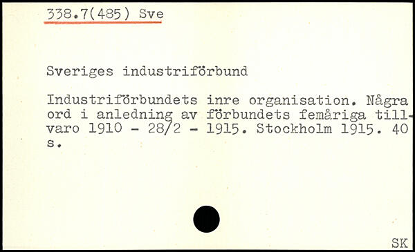 Industriförbundets inre organisation. Några ord i anledning av förbundets femåriga tillvaro 1910 - 28/2 - 1915.